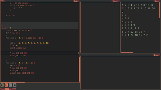 Move Code Lines is a game where you fix programs and make them print needed output. But the only way you can achieve that is to change the order of lines in those programs, and set custom input.