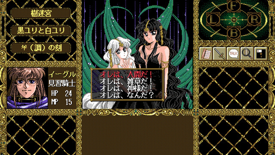 Once upon a time, there was harmony and balance in the world. Four kingdoms of humans have watched over the four elements. But then a traitor appeared, who has angered the Goddess with his selfish deeds. The balance was destroyed, the elements were no more in harmony, and the world plunged into chaos... Twelve thousand years later, a young knight named Eagle Windeed has been having a strange dream. Maybe there is still salvation for the human race. Maybe it is still possible to make peace with the higher beings. Eagle arrives at a tavern near the Tree Dungeon, determined to find out what his dream meant... Mime is a dungeon crawler: the entire game is set in a maze-like dungeon environments (with auto-map). There are no "safe" areas; random enemies can pop out anywhere (the random encounter rate is however quite low). Eagle starts alone, but later in the game three other heroes join him. The battles are turn-based, utilizing the standard "attack/magic" formula. There are a few explicit sex scenes in the game.