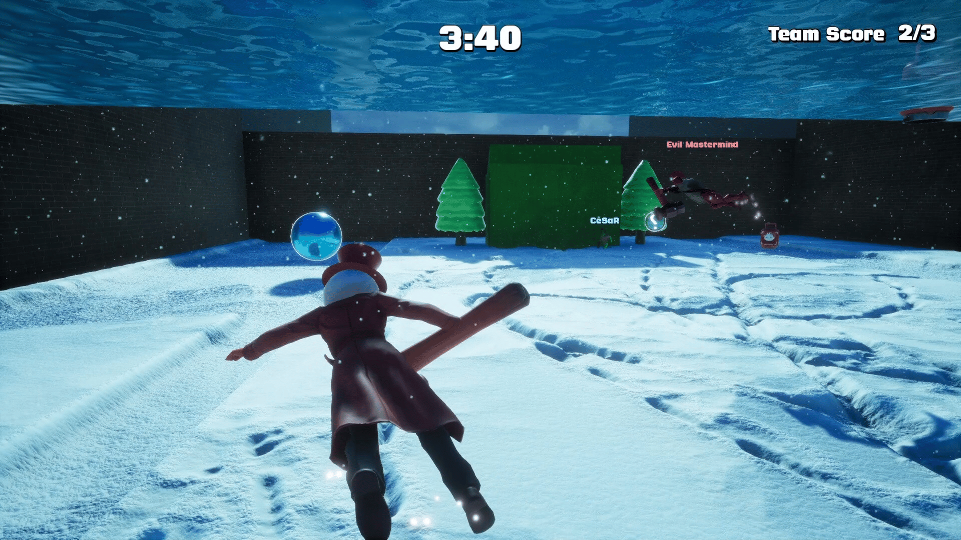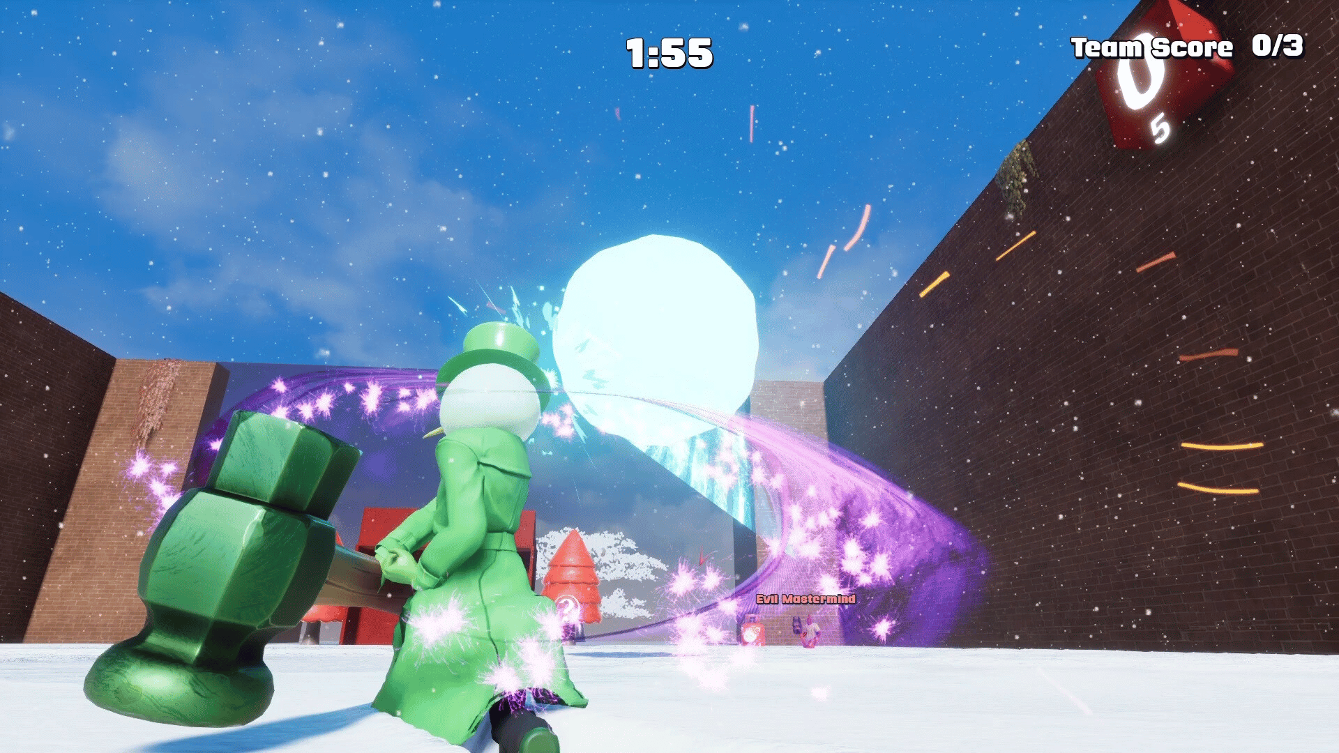 Friendly Snowball is a multiplayer PvP action game. You prepare for a slippery battle where you hit frosty balls with your giant hammer to score. You use power ups scattered throughout the arena to help you beat the opponent team. Play with friends and have fun in a snowy environment!