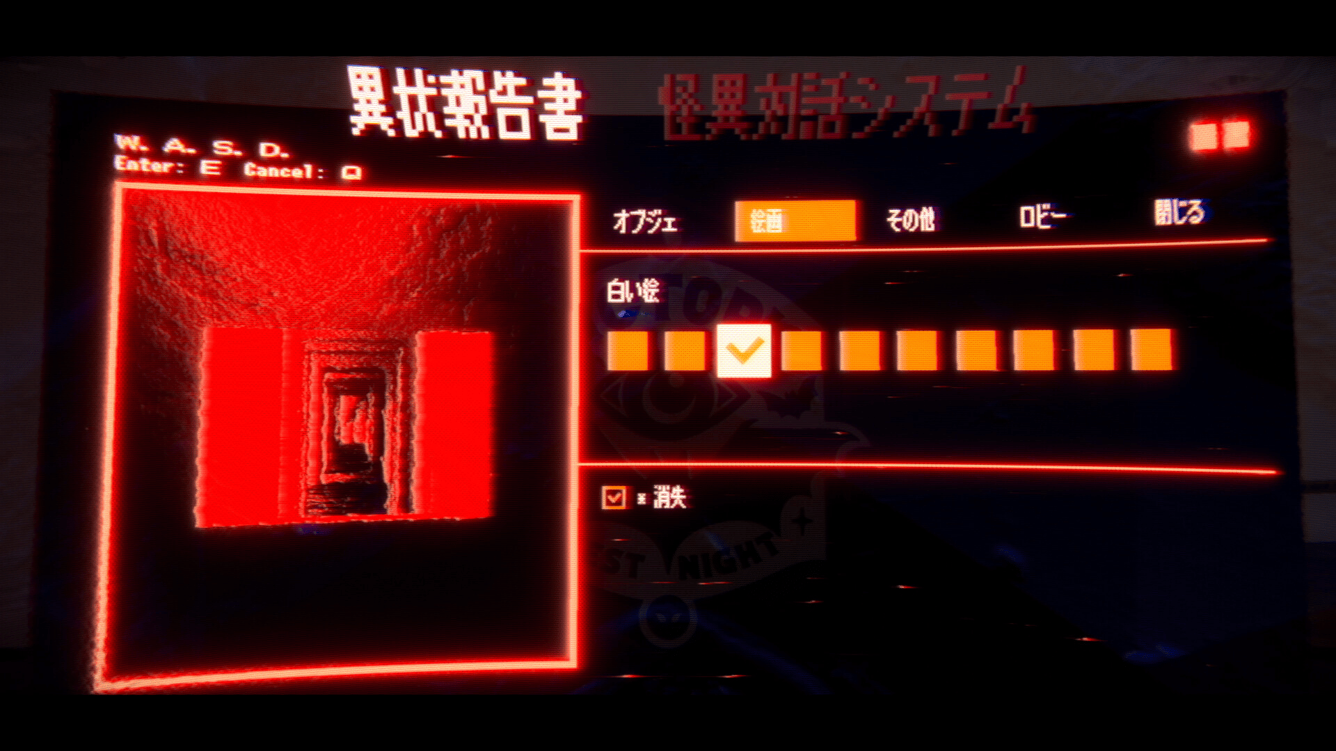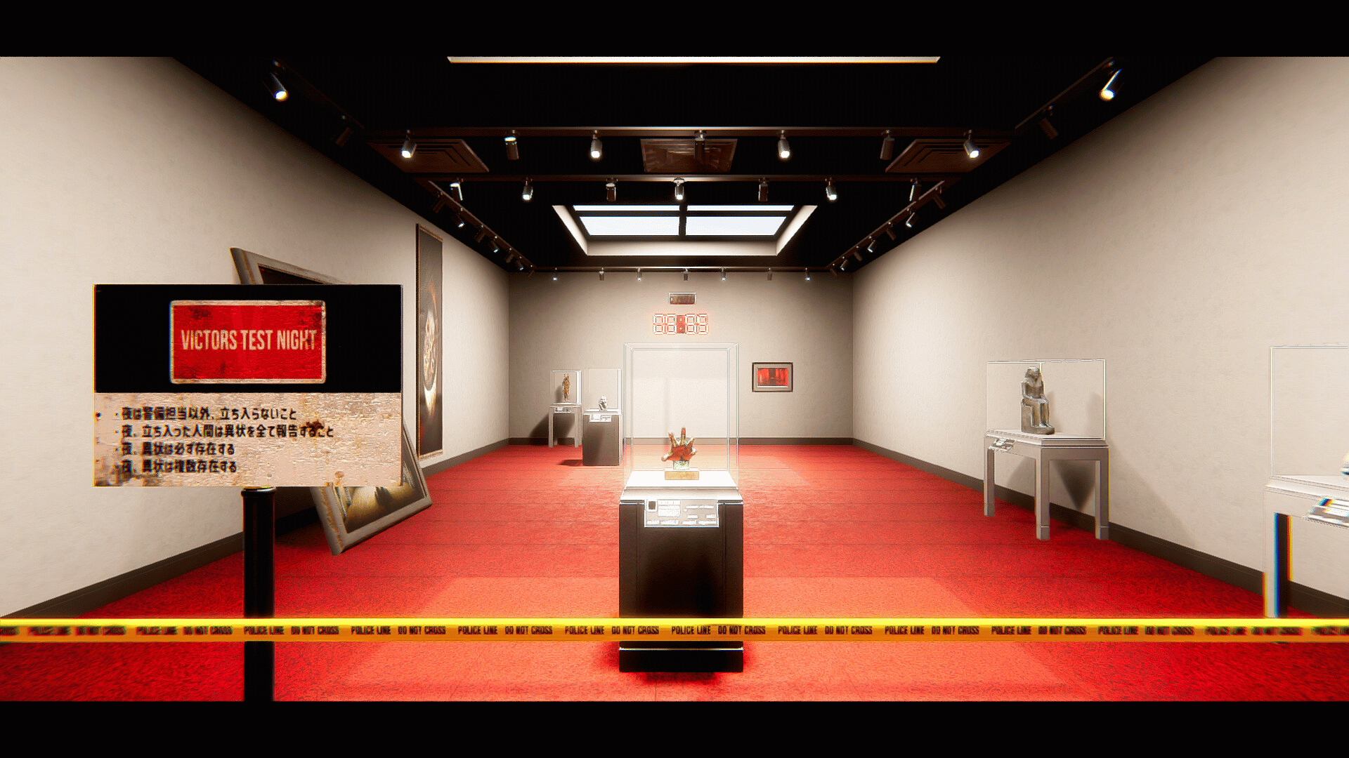 Victor's Test Night is a first-person adventure game. You have to explore each museum by day and by night, and find and report on anomalies not seen by day. The game lasts 5 days, but it's actually 5 minutes and 55 seconds.