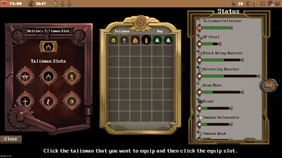 This is a rouge-like deck-builder game, in this game, you can choose different talismans cards, and consumables to deal with different enemies. And if you feel tired, retire and turn some of your talismans into heirlooms, then the next generation can use them.
