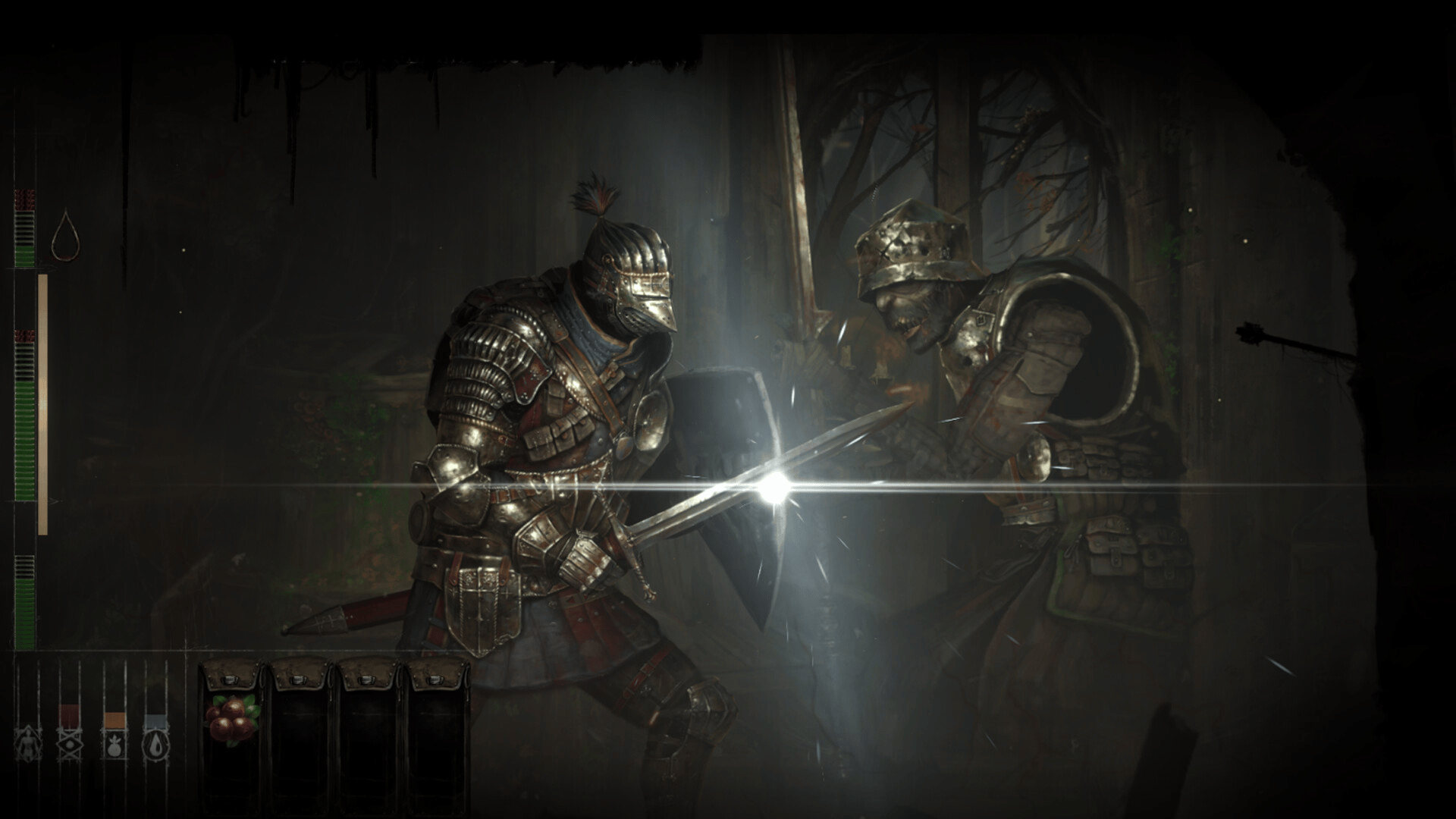 2D real-time survival action. A somber journey through lands ravaged by a long siege. Extensive and complex combat, hardcore survival and deep immersion. Heal the heart of an old castle... or share its darkness.