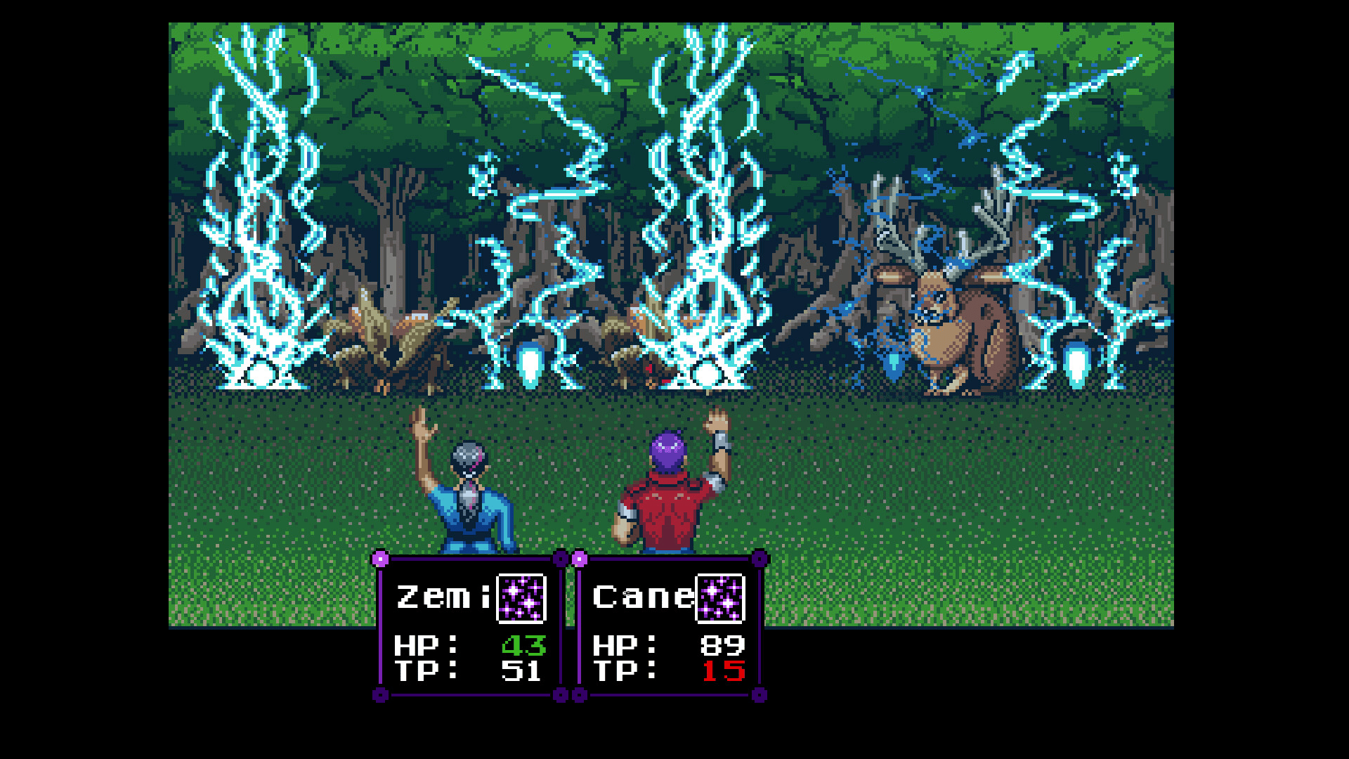 A turn-based RPG that goes from cheery fantasy to not-so-cheery sci-fi, hopefully with the feel of something straight outta the '90s