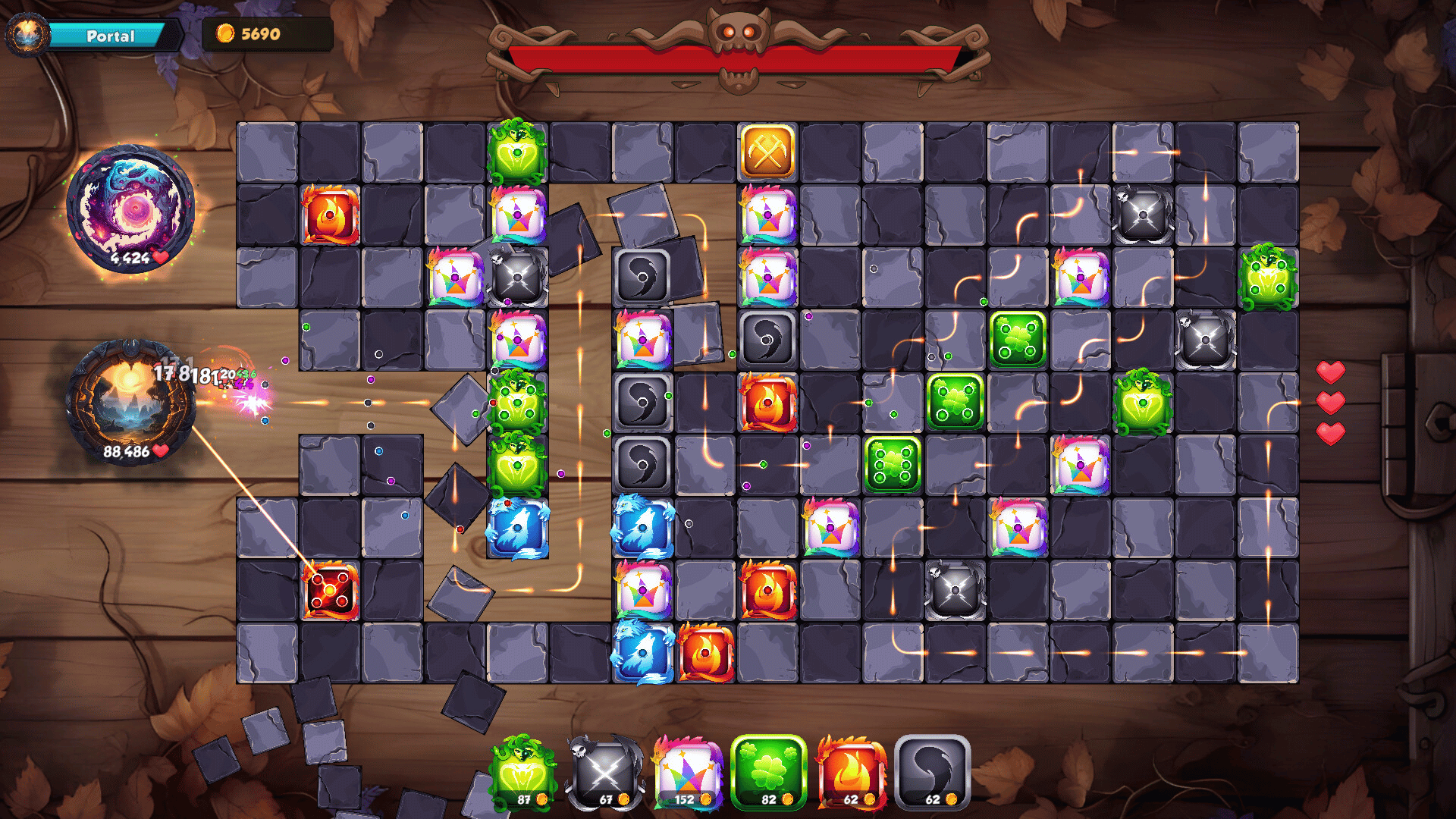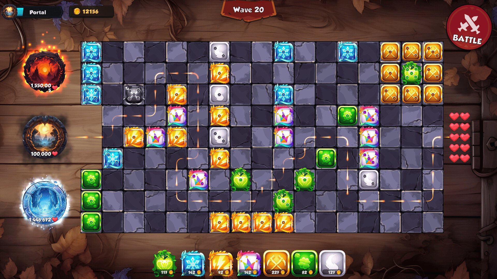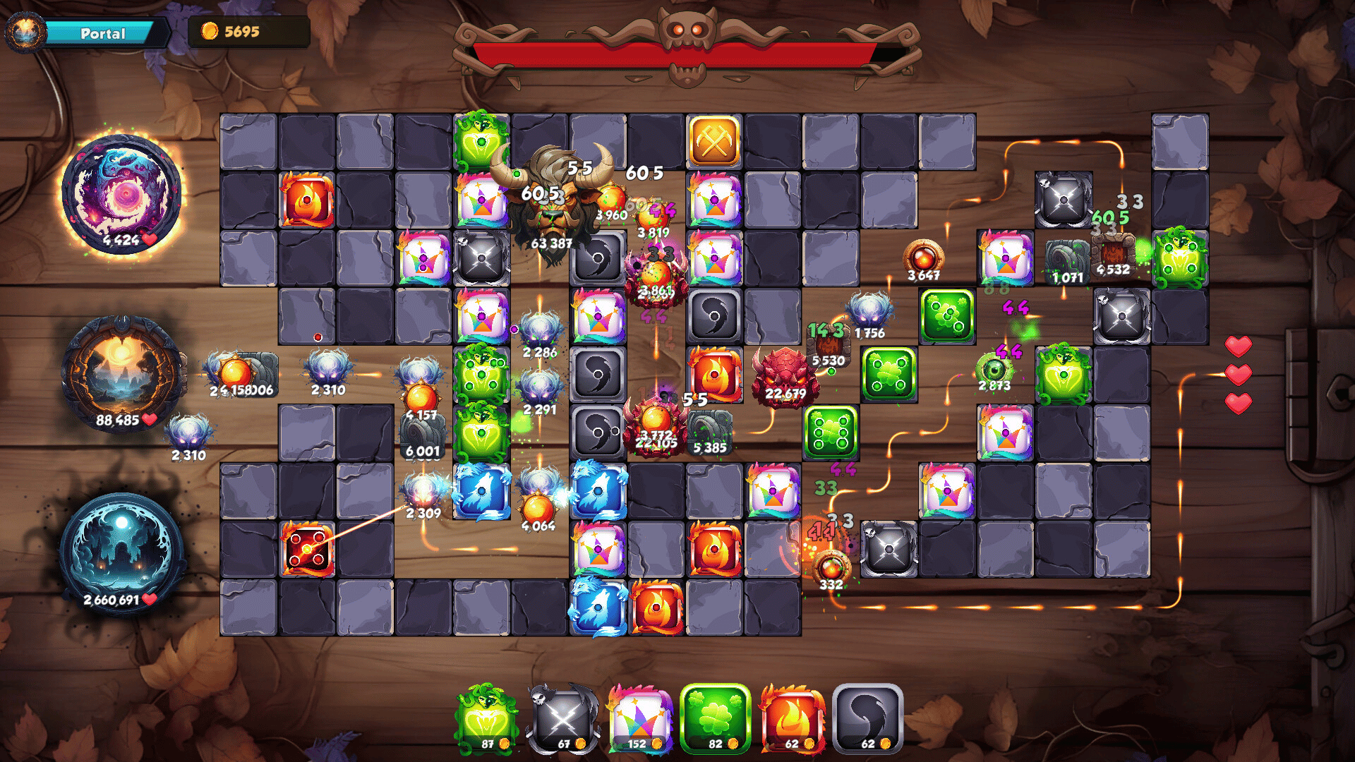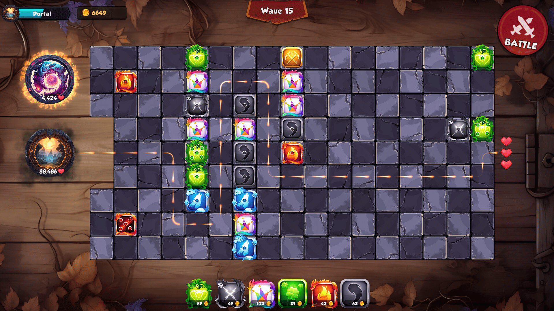 Dice TD is a board-themed tower defense game with fantasy dice, instead of towers. Merge your dice to increase their pips and powers. Defend your base from the incoming enemies and construct epic mazes to slow them down.