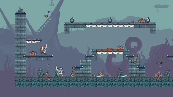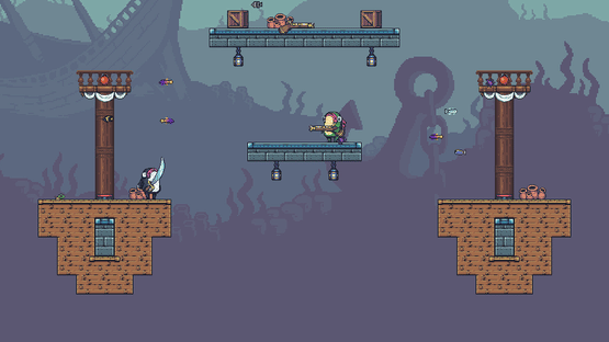 Fish Folk is a tactical 2D shooter, played by 2-4 players online or on a shared screen. Aim straight left or right; the rest is up to clever movement and timing in this fish-on-fish brawler!