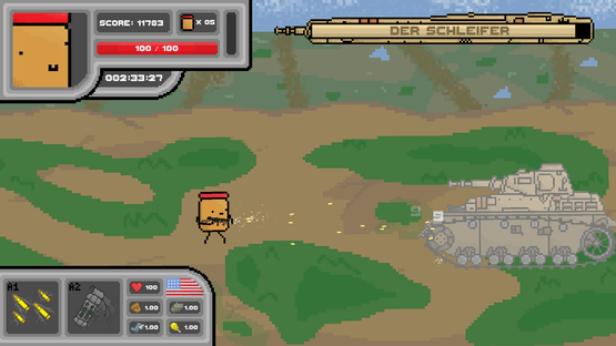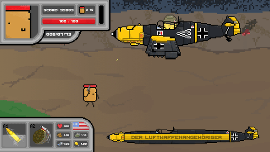 Shoot, dash, and power your way through enemy lines in the arcade-style 2D side scroller, Die Erdnussbutter!
