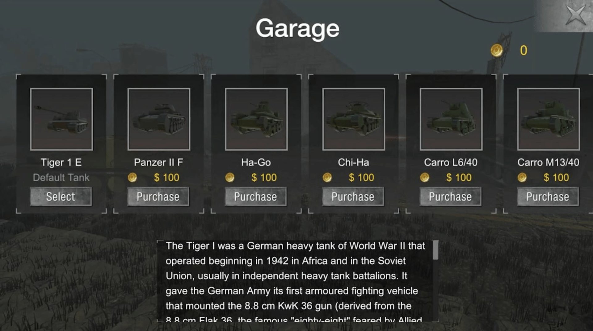 Drive the Tiger I to fight the Allied forces and defeat the evil boss.