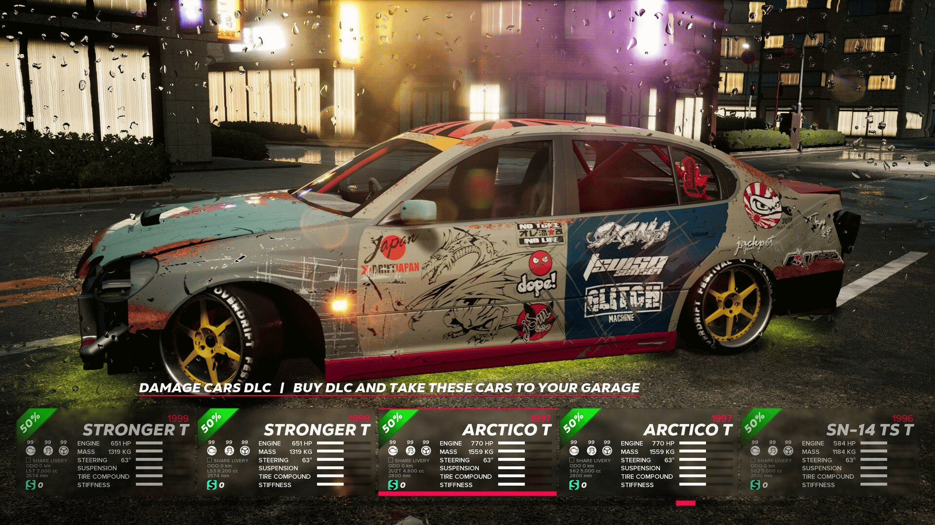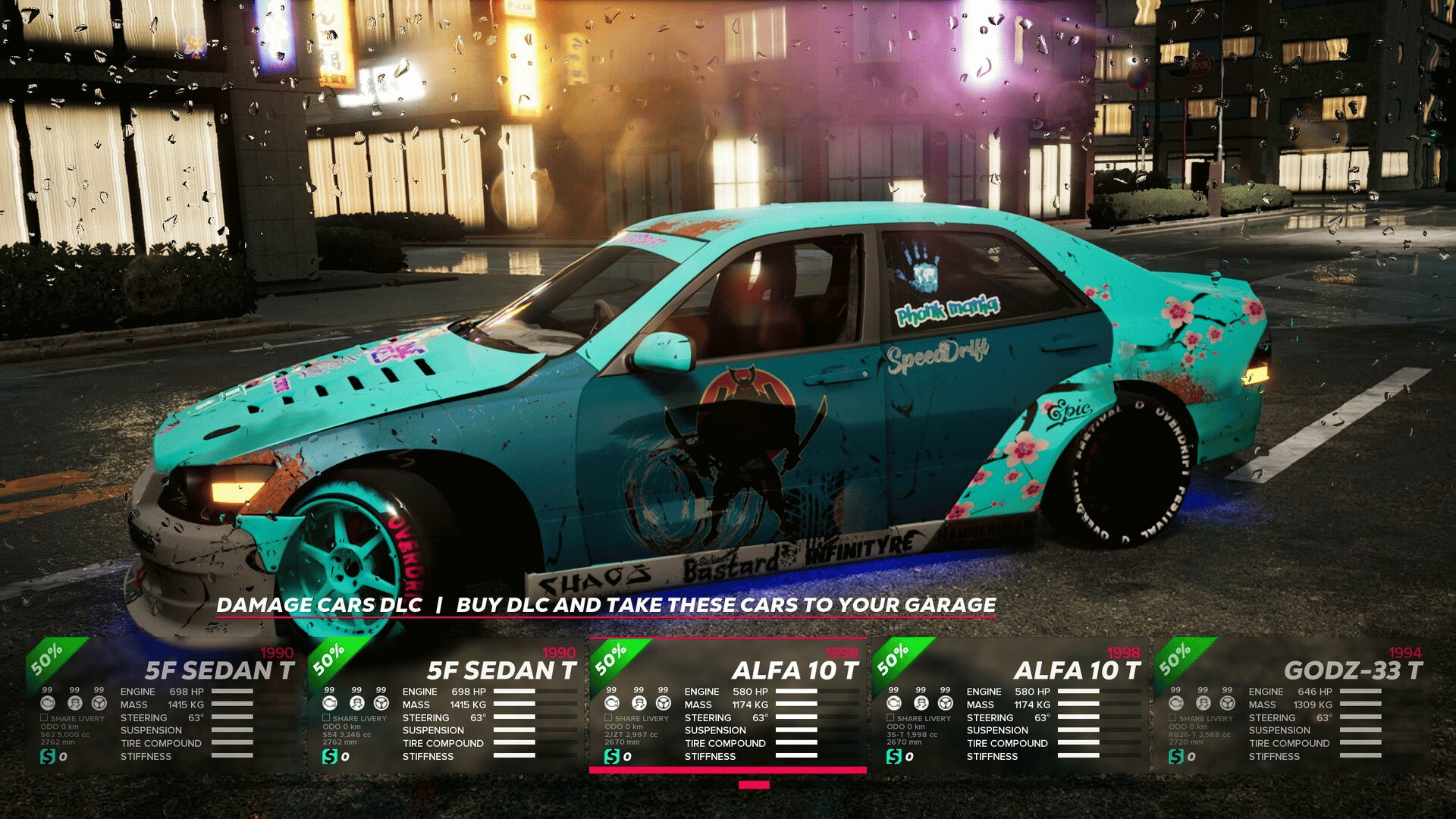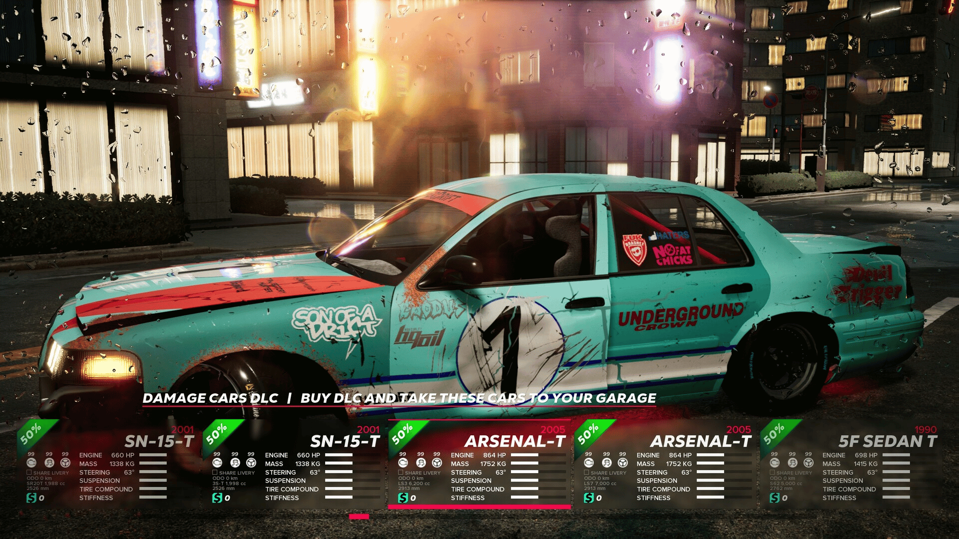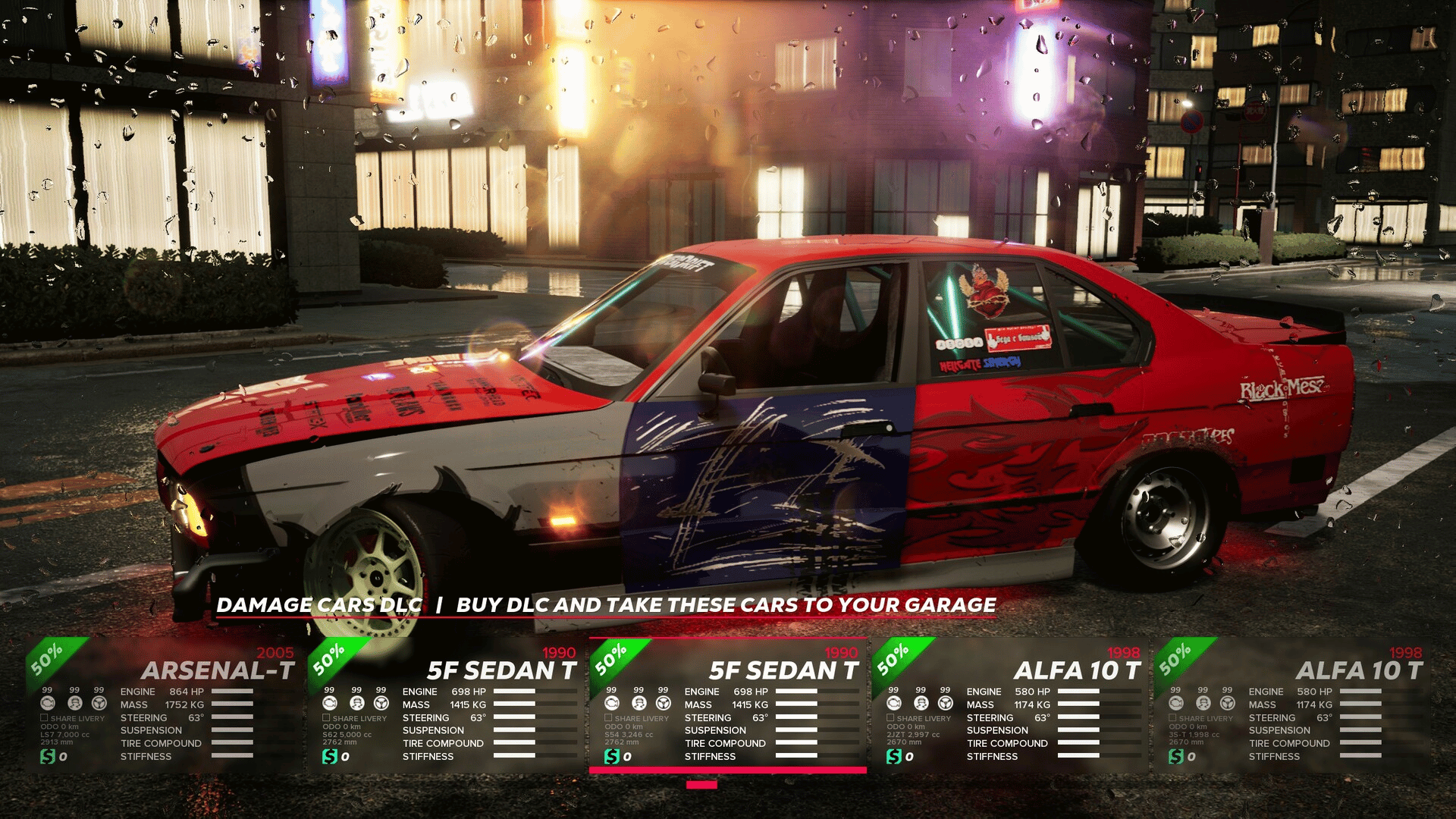This pack includes 10(!) visually damaged cars with unique visual design and technically upgraded to SPORT level! 1999 ROYAL T 1989 TUREL 33 T 2001 SN-15 T 1990 5F SEDAN T 2005 ARSENAL T 1998 ALFA 10 T 1994 GODZ-33 T 1999 STRONGER T 1997 ARCTICO T 1996 SN-14 T