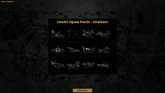 Challening 6 x 6 jigsaw puzzle featuring line drawings of iconic airplanes by LineArtBabe, on a smooth background.