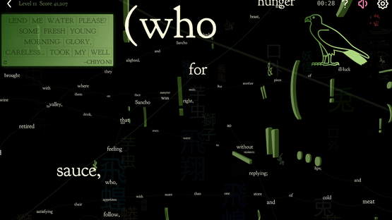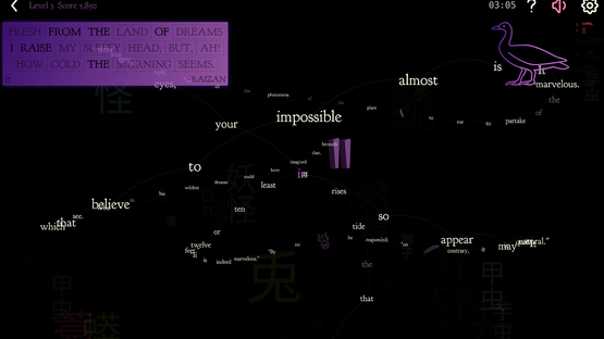 Haikuna is a word search game set inside The Wonderful Wizard of Oz, Journey to the Center of the Earth, and Don Quixote. Players teleport around these stories to find the words to haiku written in the Nanboku-chō, Edo, Genroku, & Meji eras of Japan.