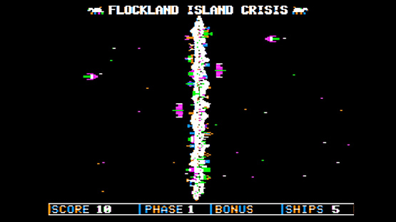 An island runs from north to south in the center of the screen. Both sides of the island have to be defended from the enemy.