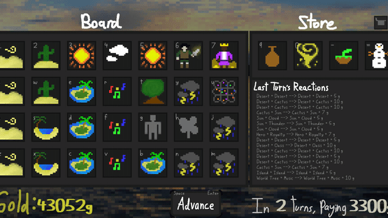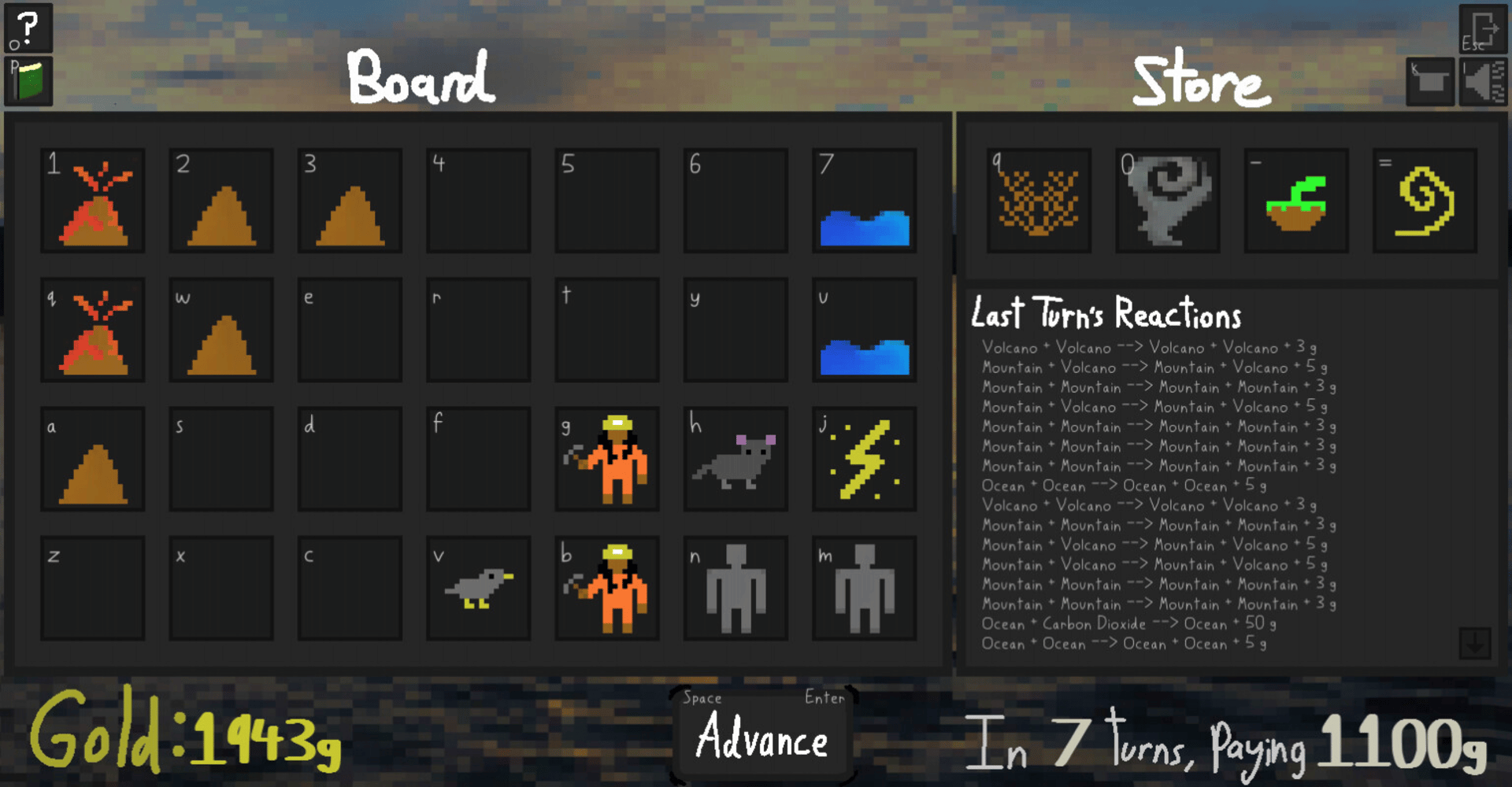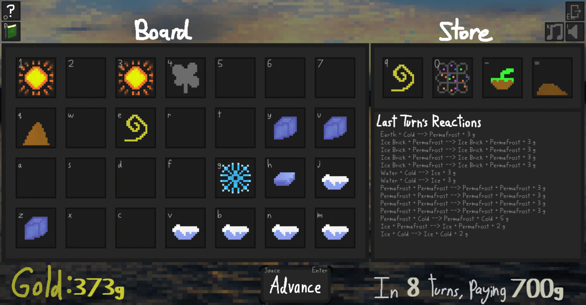 A turn-based game about forming reactions to pay off an ever-increasing payment demand.