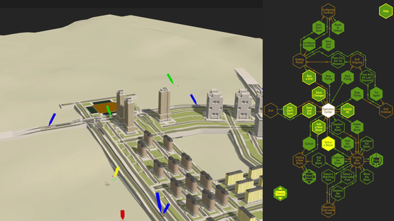 This game includes two major parts: building a city scene using the given building blocks and finishing fire copter drills on the scene. The building blocks can be assembled by matching color-coded faces on the blocks, and a drill is finished after the fire copter flies through all waypoint gates.