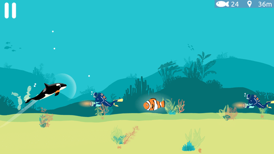 Explore the sea and save the killer whales in this "Endless Swimmer" game. Discover unique biomes, orcas, powerups, and more!