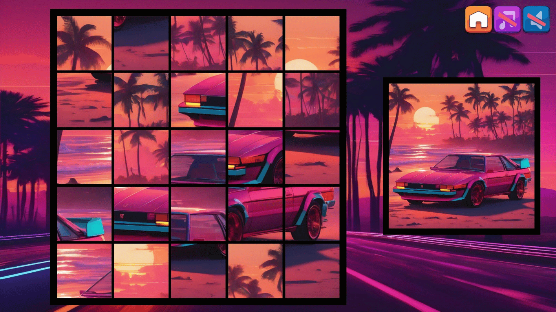 OG Puzzlers: Synthwave Cars is an hardcore puzzel game with cars in an stunning synthwave style. You have to assemble a single image from random generated indivdual pieces. Combine all of the smart singel frames into one big image and unlock the next level.