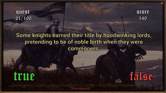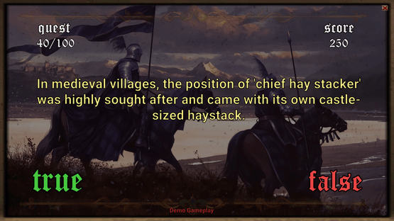 Medieval Questionnaire is an educational game that tests your knowledge of medieval times with true or false questions.