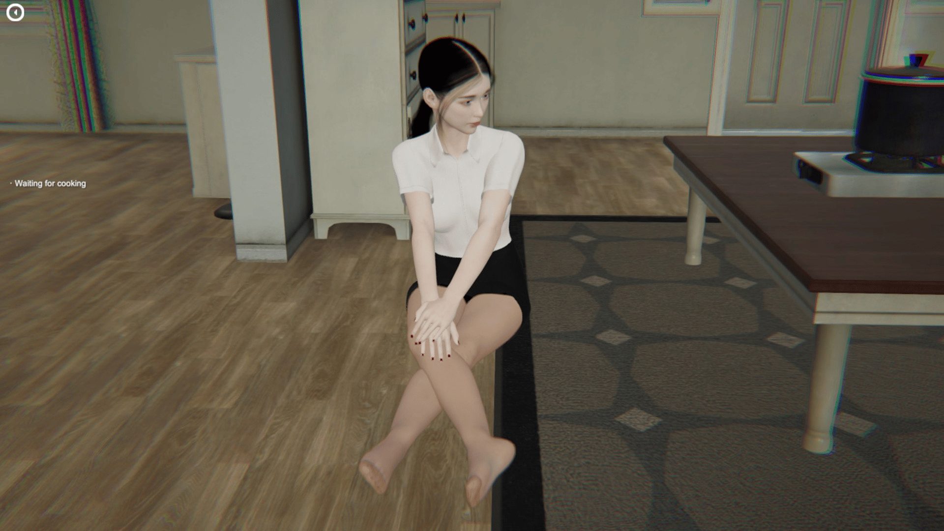 An OL dressed in uniform pantyhose and high heels, returned to the rental room after a day's work and prepared a delicate dinner for herself. As she waits for her food to heat up, she stretches, presses her legs and wiggles her toes, as if waiting for her food to cook faster.