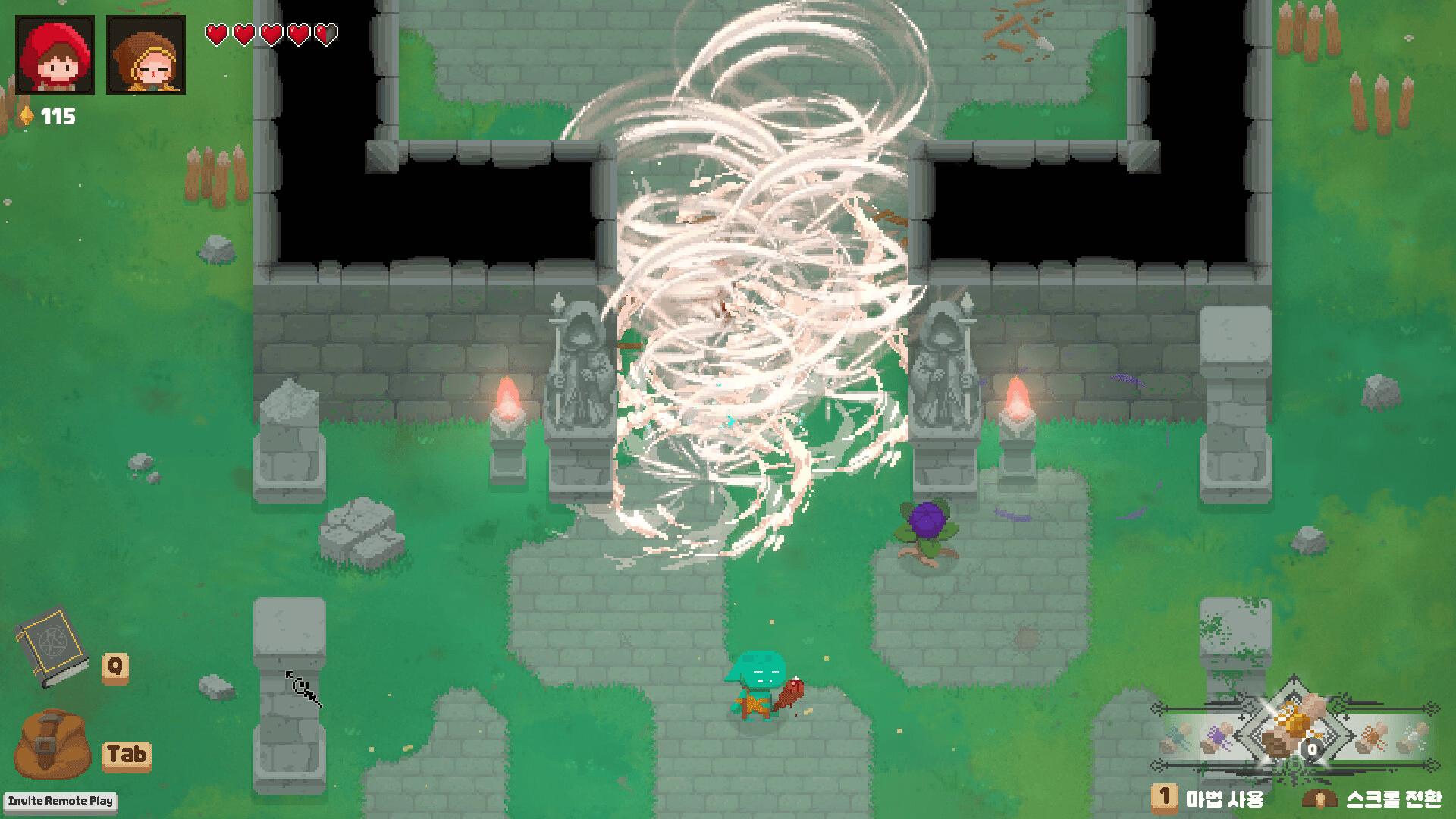 CastingPlz is a 2-player cooperative roguelike game where players take on the roles of two characters with distinct responsibilities: one for attacking and the other for movement.