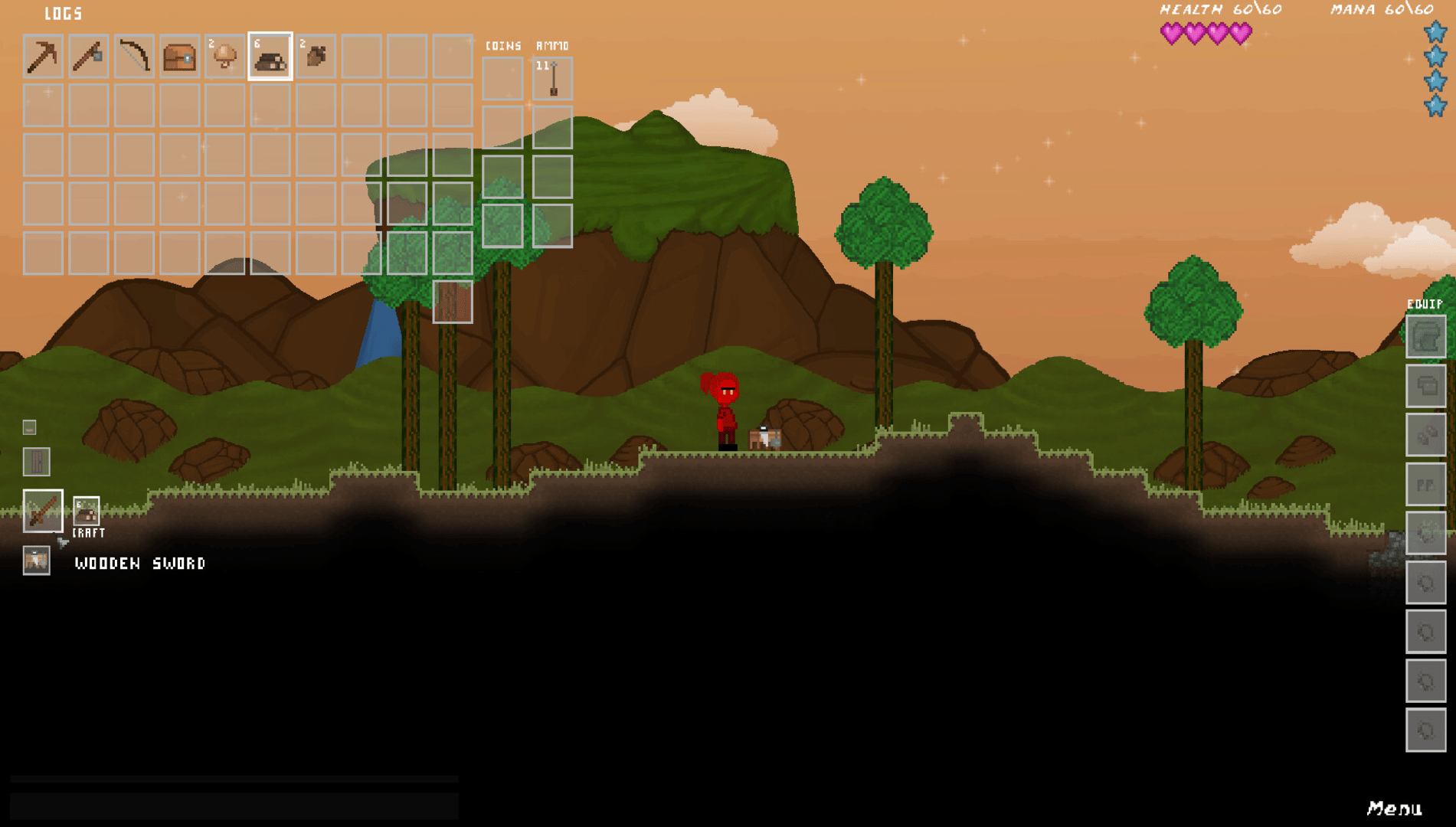 Explore a new world, traverse randomly generated landscapes, fight monsters, dig for materials, craft equipment, find treasure and trinkets to increase your strength, build a house to protect yourself at night, dig deep to find greater challenges, unique weapons, and more!
