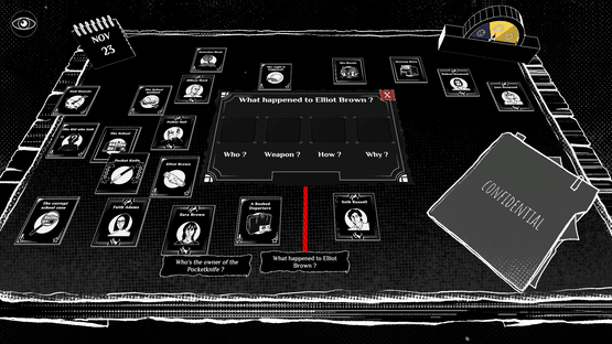 A new kind of detective game where you uncover cases entirely represented with cards. Interrogate any character about ANY other card. Dissect the events that lead to Eliott Brown's demise... Then write your own thrilling investigation stories and share them to fellow detectives around the world.