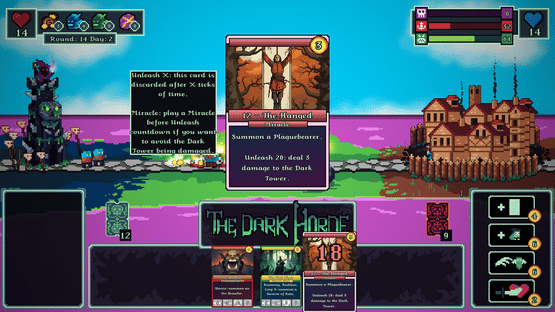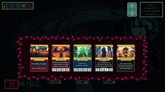 The Dark Horde is an exciting roguelike deckbuilder where the cost to play cards is TIME. Play your cards to summon a horde of minions and to cast powerful sorceries! Improve your defenses, acquire rare cards, level up, unlock new upgrades and then lay waste to each human settlements!