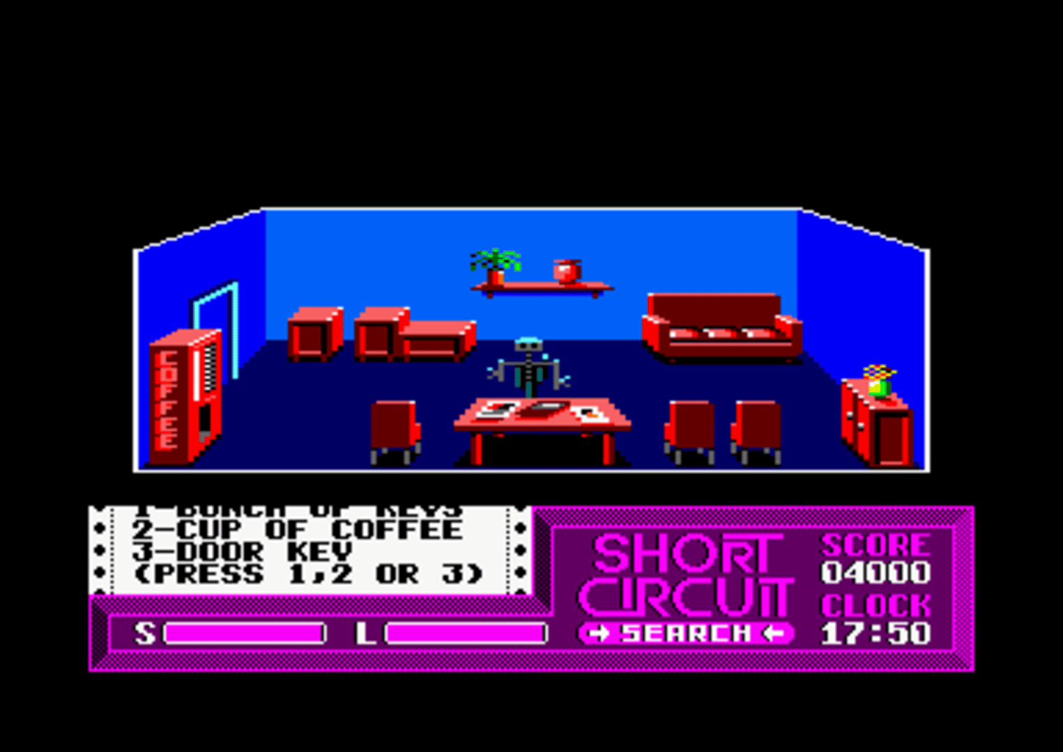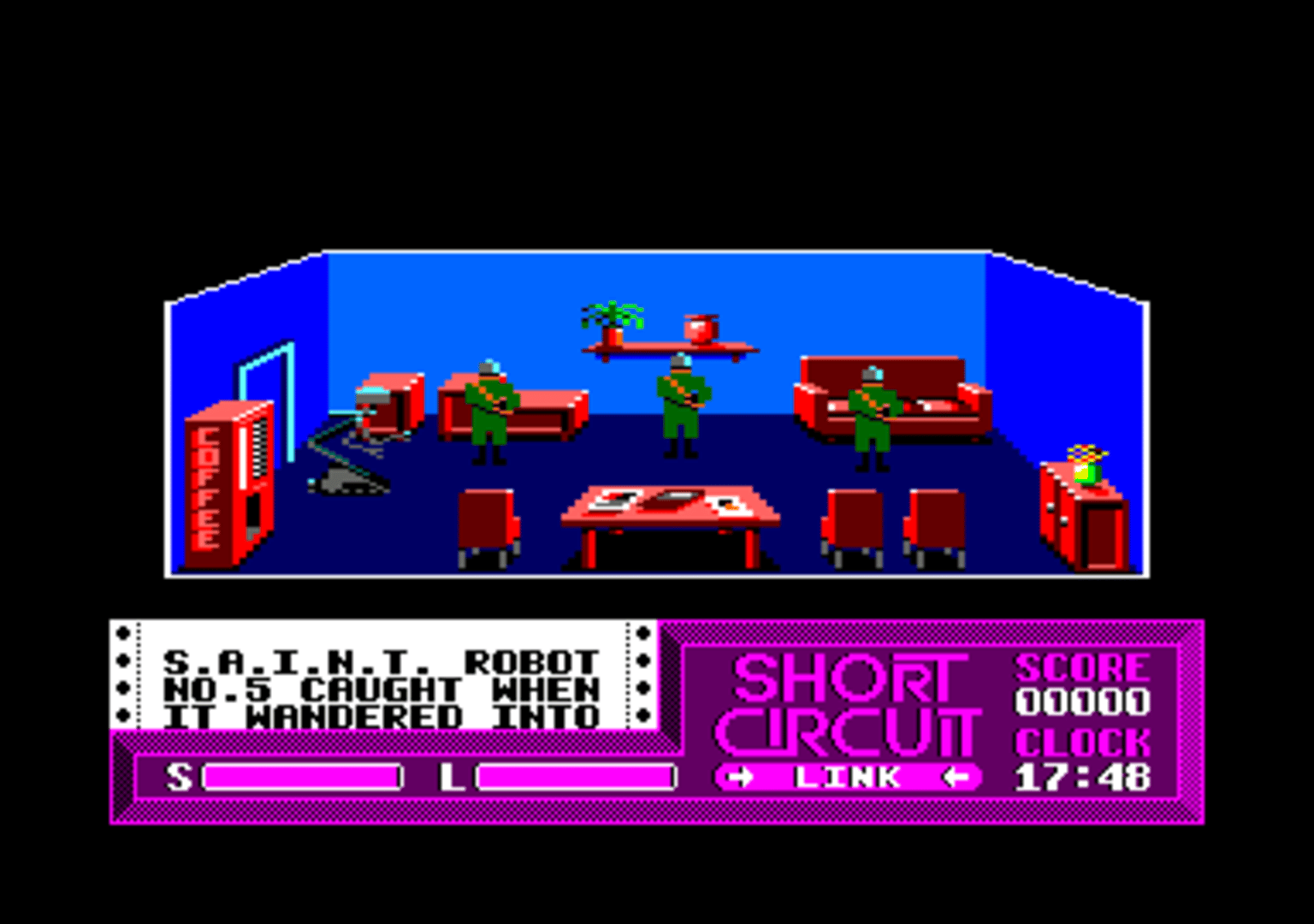 The CPC version of Short Circuit is similar to the ZX Spectrum version. However the adventure portion of the game features a smaller map. The rooms, objects, and puzzles have also been altered.