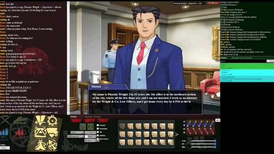 Welcome to Attorney Online, abbreviated AO, a roleplaying chatroom based primarily in the Ace Attorney universe. Sporting hundreds of player-made characters, court cases and abstract roleplays, AO has been a tight-knit community for over a decade.