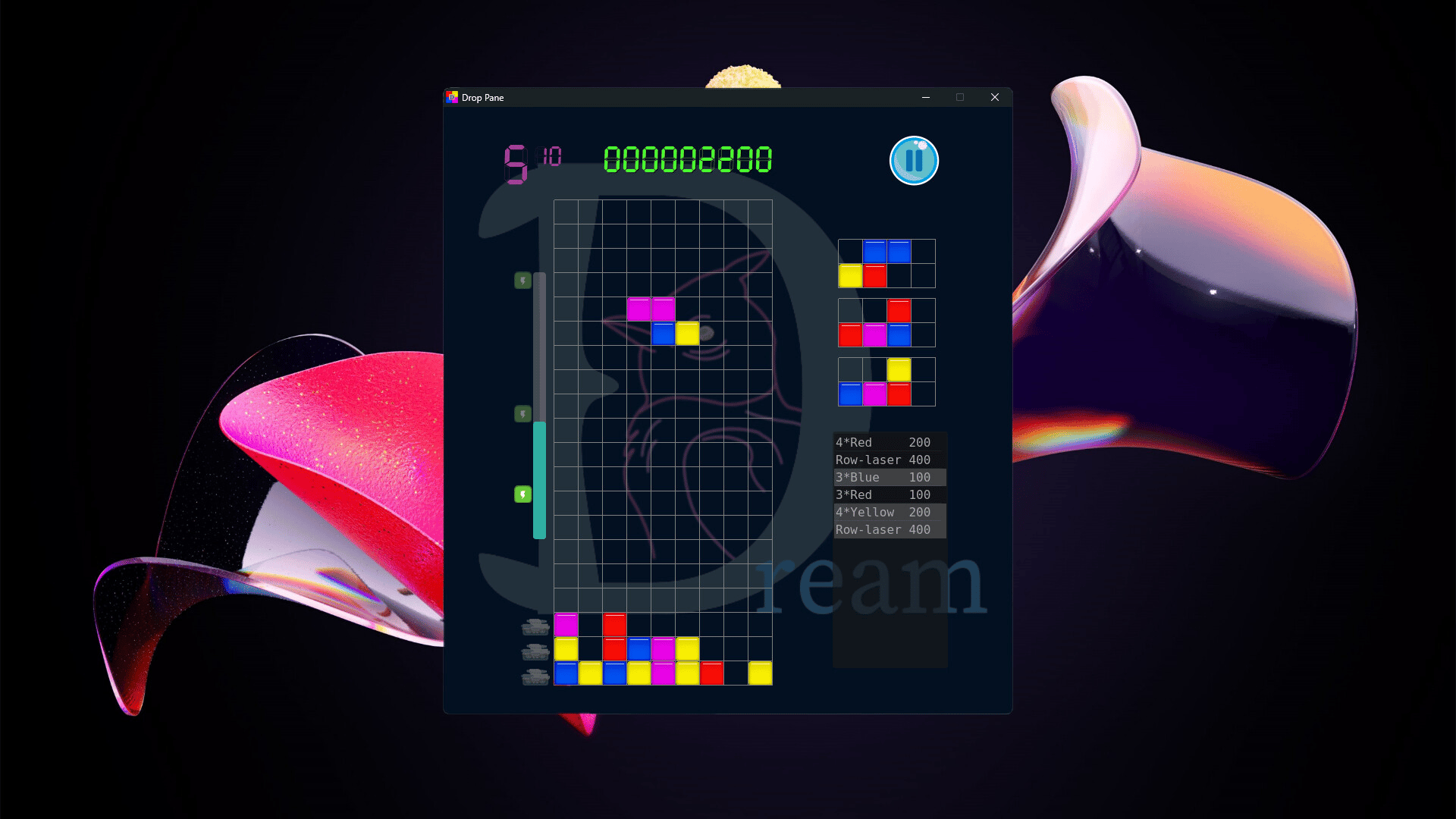 Drop Pane is a Tetris-inspired indie game that blends the gameplay of match-3. The swift drop of piece challenges your breadth of attention and quick reflexes, demanding a sharp mind for effective handling. The game contributes to the development of spatial and language intelligence as well.