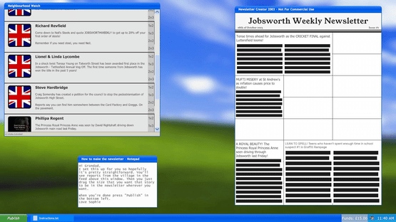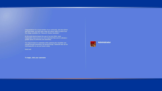 Congratulations! As an upstanding member of the community, and since Simon had a stroke last Friday, you have been made the interim editor-in-chief of our fine village newsletter, Jobsworth Weekly.