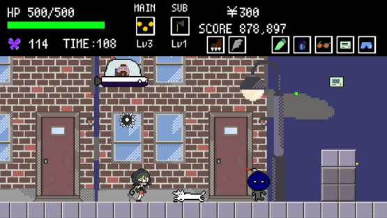 The path changes depending on player's choices! "EnGaCho" is an arcade-style side-scrolling action game where you advance while defeating enemies and earning money.