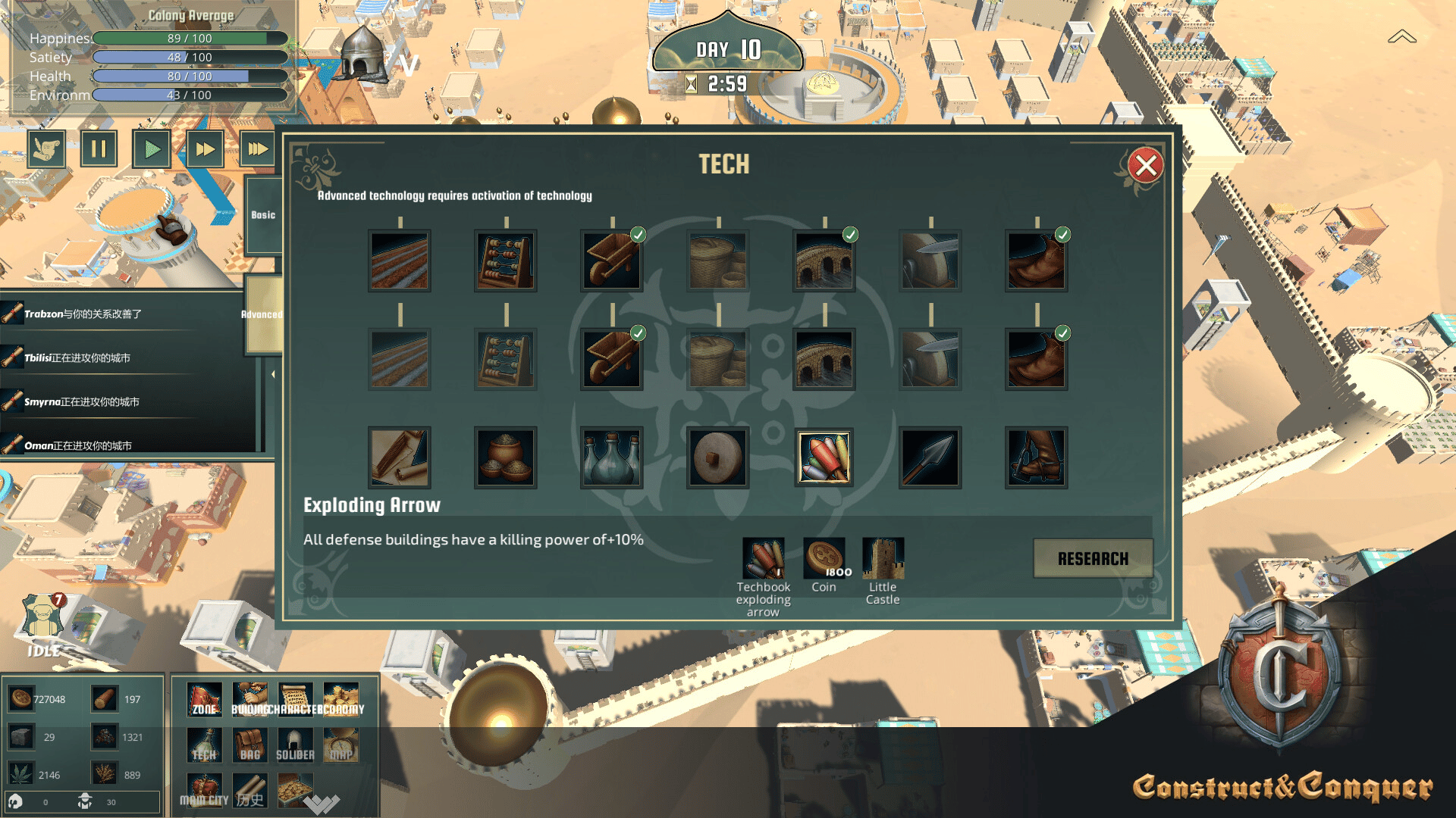 This work is a comprehensive game that combines elements of management, strategy, and competition. The game is based on the Arab world during the Crusades. It depicts a down-and-out young lord leading his people to rebuild their homes and fight against the enemy in the desert of abject poverty.