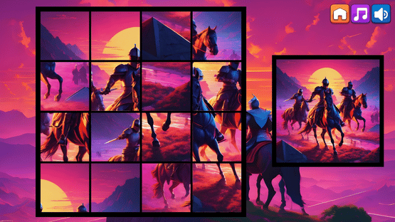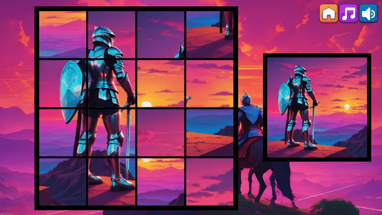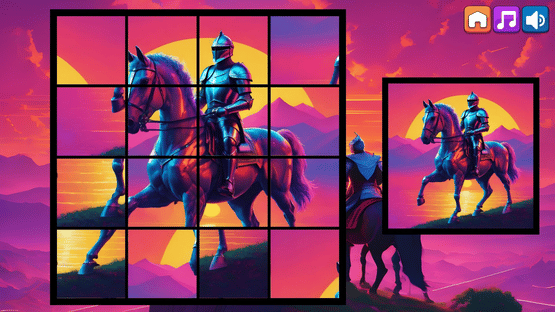 OG Puzzlers: Synthwave Knights is an puzzel game with cool knights in an stunning synthwave style. You have to assemble a single image from random generated indivdual pieces. Combine all of the smart singel frames into one big image and unlock the next level.