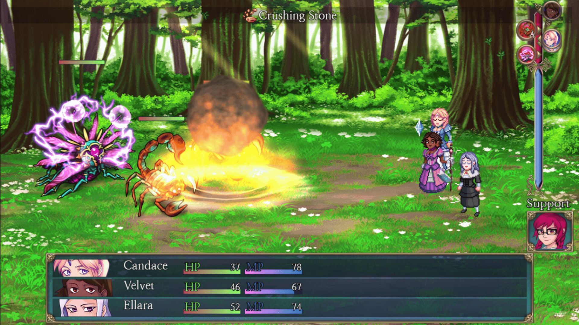 BlueSkies 3 is a 2D fantasy turn-based JRPG featuring a magical world full of wonders. Journey with the young oracle named Candace Aethelmey and her friends, as they venture forth to join the Arcane Mastery Tournament. Along the way, they find new friends and unravel magical mysteries.