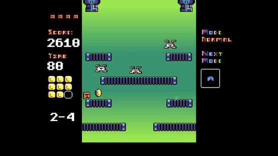 Jump Pals is an endless high-score-chasing platformer about rapidly switching characters to collect as many coins as possible. Use each of the 8 characters' special abilities to jump gaps, stomp monsters, and smash platforms until you can beat all levels in a single attempt.
