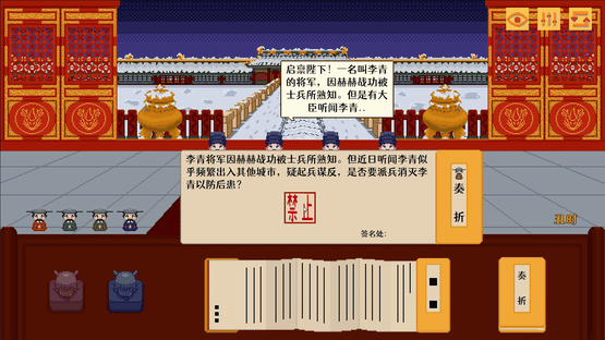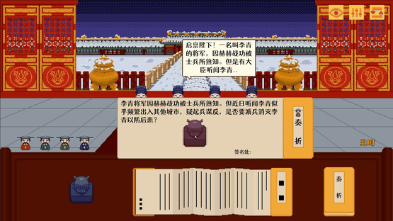 Enter your name and start your own dynasty. Rule your empire and choose between developing technology or culture, governing diligently or lazily. Through a series of memorials and decisions, you will determine the fate of your nation.