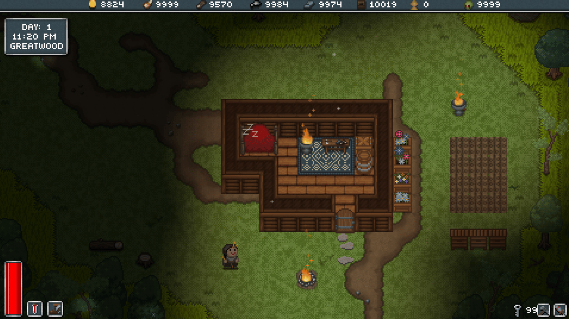 Fight through hordes undead, and collect their heads to unlock permanent upgrades while you gather resources to build your base. Choose your class, and preferred weapons. Explore dungeons to find rings, tools, and blueprints, and rescue NPCs who unlock new structures and provide various resources.