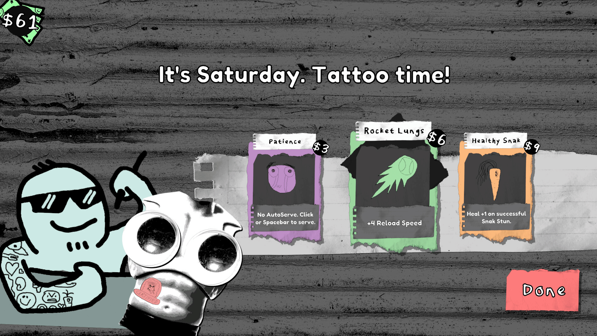 A sports-like roguelike. DRAFT & GRAFT cursed limbs. Get horrible tattoos. Become a Tennis God.