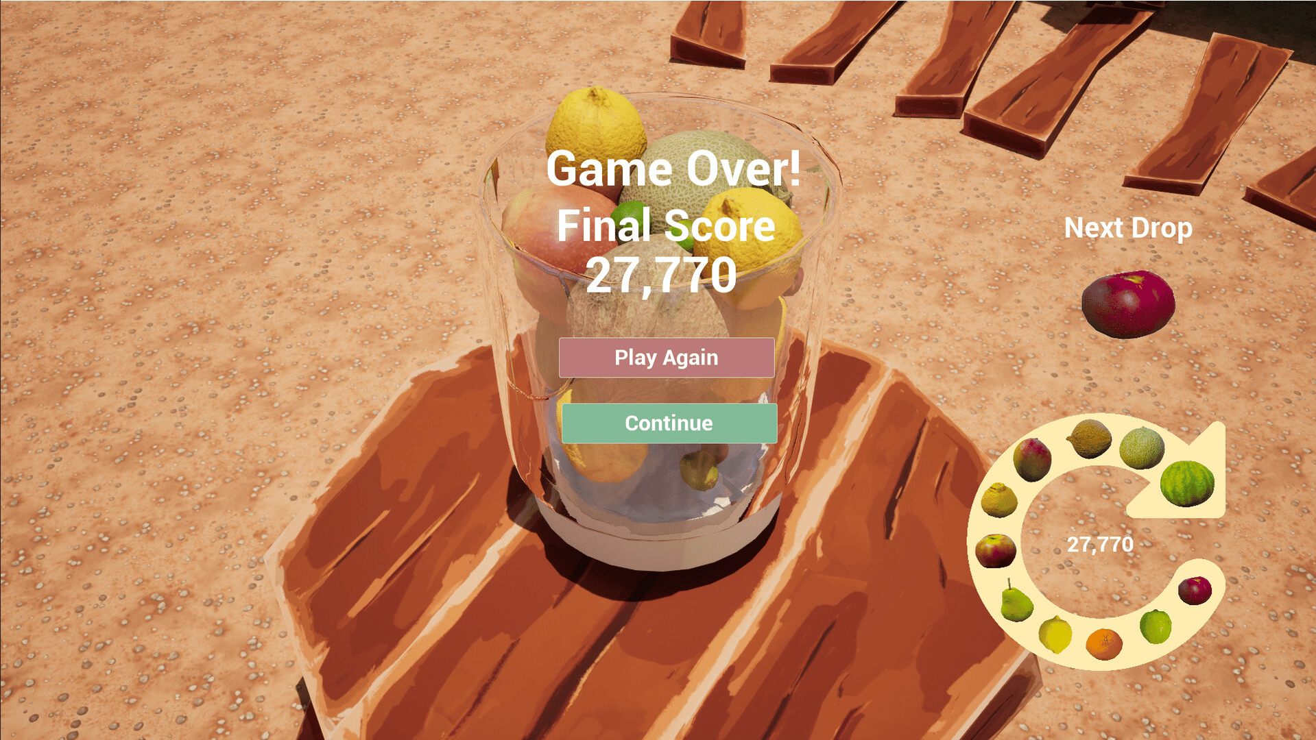 Combine Fruits and get score in this mass physics 3d Game!In Rolling Fruits, you combine 2 same fruits for next bigger one. You can use this unique physics in game to combine same fruits!