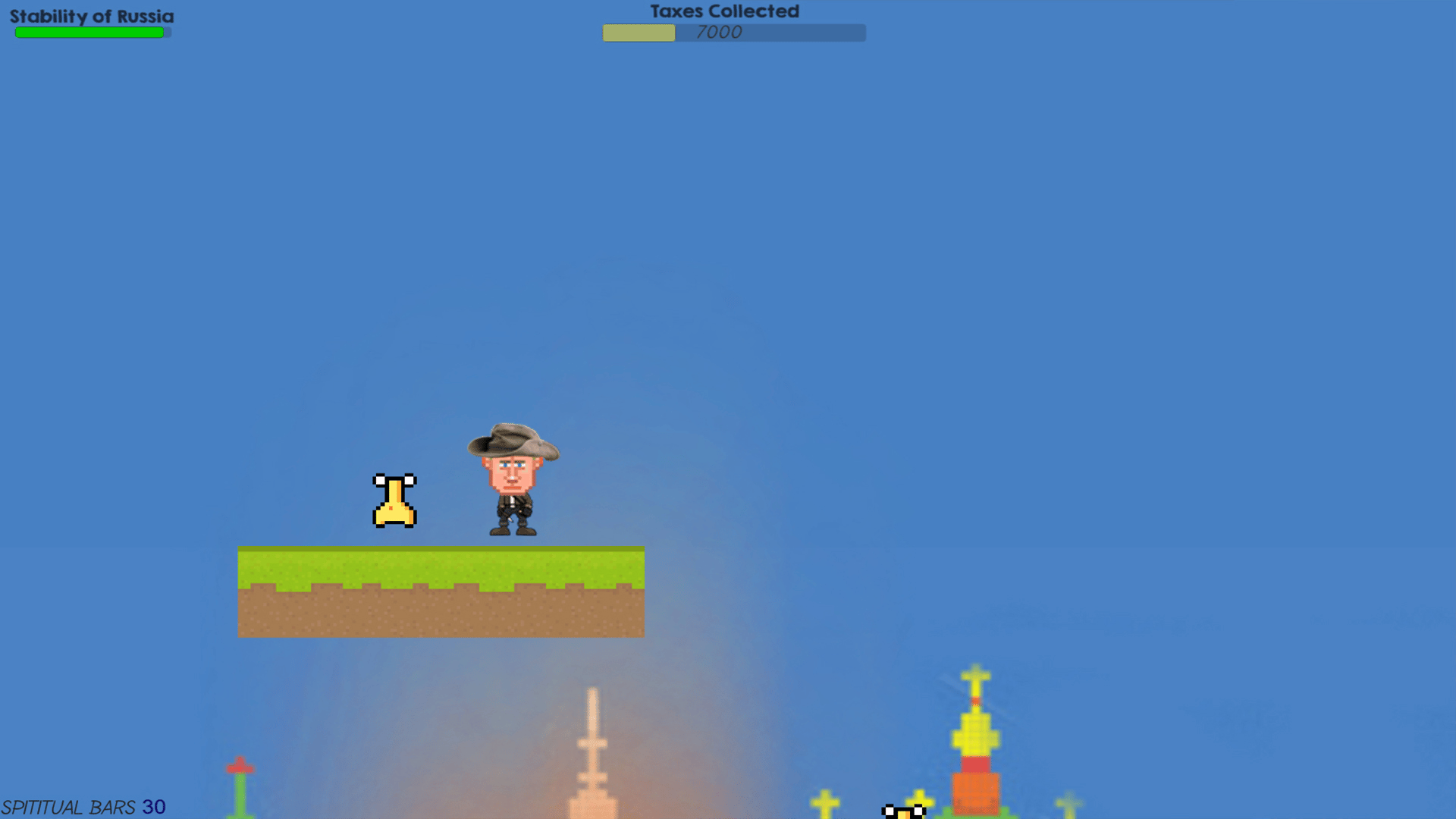 Help the true patron of Mother Earth, Tsar Vladimir, to overcome his psychedelic trip and find the way to the desired Throne, so that order and prosperity could reign over the country once again.