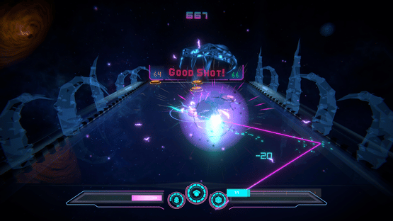 Master Blaster is an 'Aim-and-Shoot' game that combines classic arcade action with air-hockey physics and strategic, tactical and precision elements. Blast away against swarms of chaotic forces, deliver precision shots or plan your shots to restore cosmic order and become Master Blaster!