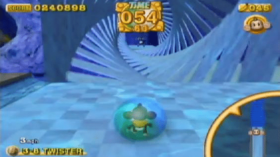 The objective of Super Monkey Ball 2 is to guide a monkey trapped inside a plastic ball through a maze to the goal. There are three variations, story mode, challenge mode, and practice mode. In story mode you have an unlimited number of tries to complete a stage, and after clearing 10 stages a movie clip is shown followed by a new world of 10 stages. In challenge mode, you have a limited number of monkeys and a time limit to complete numerous levels of increasing difficulty. In practice mode, you can play any stage already completed in the other two modes. In addition to the main game options, numerous party games are also included. These are monkey race, monkey fight, monkey target, monkey billiards, monkey bowling, monkey golf, monkey boat, monkey shot, monkey dogfight, monkey soccer, monkey baseball, and monkey tennis. The party games can be played by one to four players.