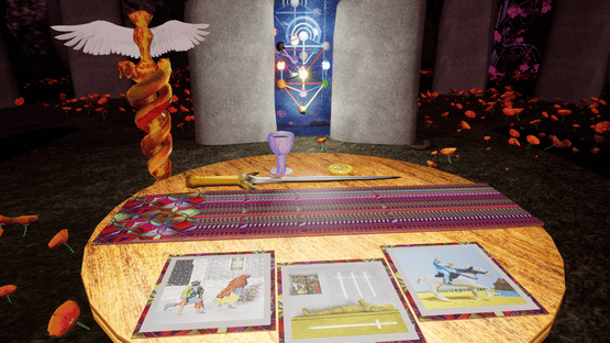 Select three cards from a shuffled deck to get a spread for Past, Present, and Future. See how the chosen cards correspond to the Tree of Life sefirot. Provide your feedback as we work on interactive Tarot characters and locations together. Join us in making a meditative immersive Tarot experience.