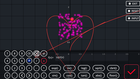 You input any function to guide the red ball on the plane to the goal.