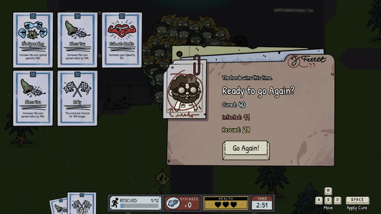 After the recent spread of a mysterious zombie virus the world has collapsed. Luckily you, Dr. J. Ferret, were able to develop a wonder cure capable of reversing the apocalypse. Can you reclaim the living before it's too late?