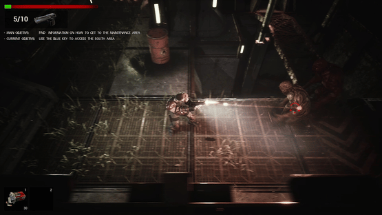 SymbioPhobiA is a short survival horror game, mainly from an isometric perspective that mixes action, exploration, puzzles and platforming that takes place in a futuristic and post-apocalyptic bunker that has an oppressive and claustrophobic atmosphere.