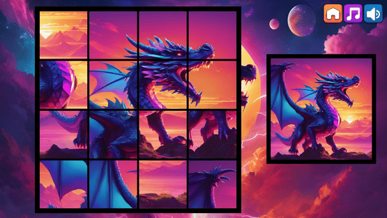 OG Puzzlers: Synthwave Dragons is an puzzel game with cool dragons in an stunning synthwave style. You have to assemble a single image from random generated indivdual pieces. Combine all of the smart singel frames into one big image and unlock the next level.