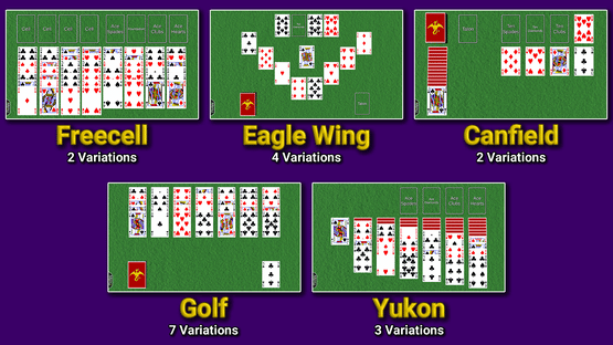 Add multiple versions of Freecell, Canfield, Eagle Wing, Golf, and Yukon!Wyvern Studios Solitaire: Solitaire Favorites adds some of the most popular versions of solitaire for you to play in Wyvern Studios Solitaire!