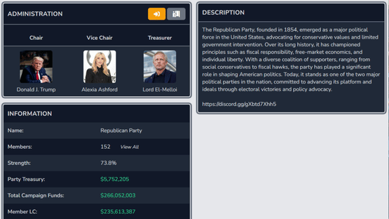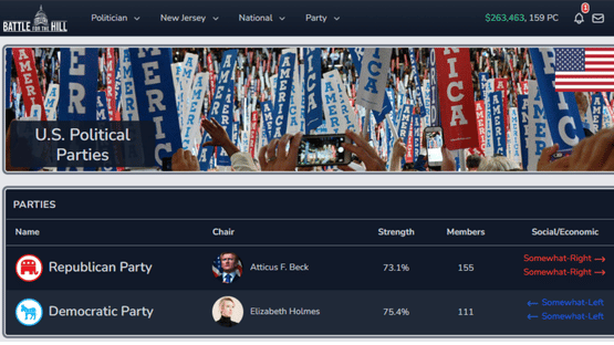 Battle for the Hill is a free to play browser-website election and political simulator. You play as an American politician, fighting to be elected to office and shape the country with policy and legislation.