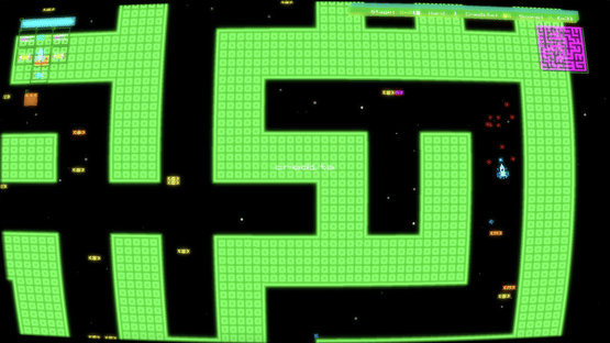 A modern omnidirectional space shooter with colorful retro-style ASCII art and light RPG elements, featuring optional permadeath.