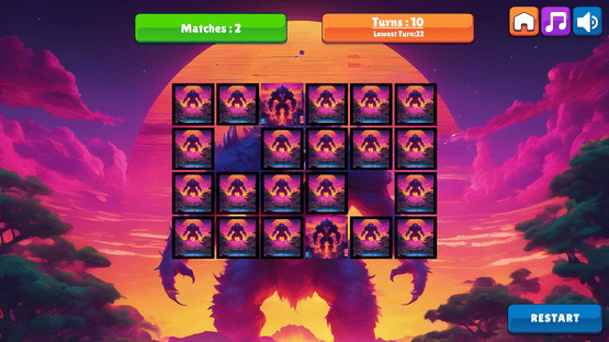 OG Memory: Synthwave Monsters/b] is an memory game with scary monster images. You have to find all of the correct pairs to complete the game. your best round will be count and always be displayed in game, to compare your rounds. try to reduce your turns every game and set up your new record.